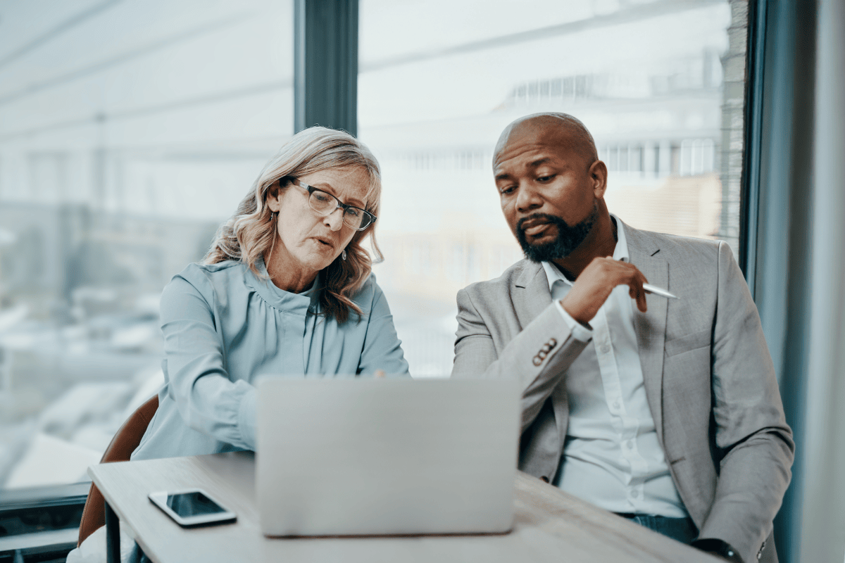 Education leaders analyzing MTSS data on a laptop to strengthen strategic decision making.